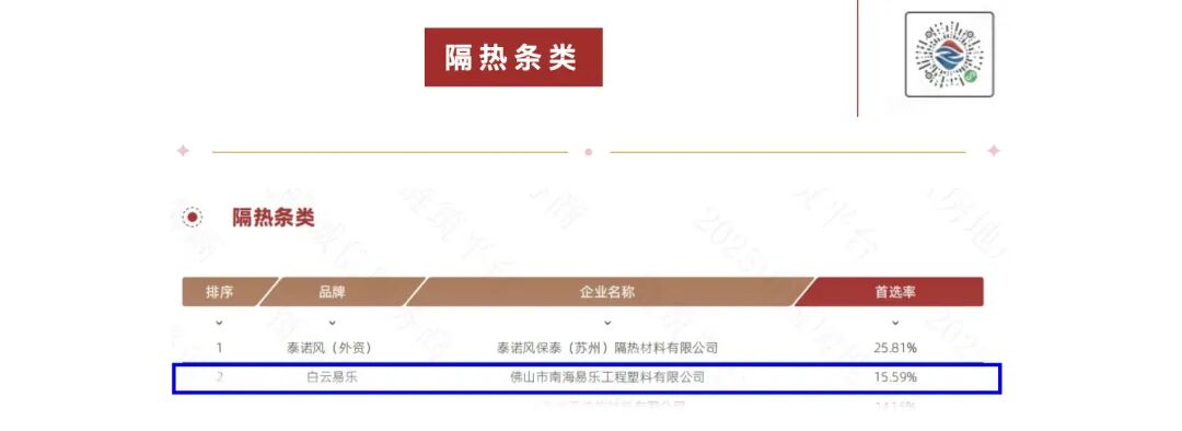 近日,2025年度中国房地产产业链战略诚信供应商榜单正式发布。白云易乐凭借在PA66隔热条领域多年的技术积淀、严格的品质管控以及始终如一的诚信经营,成功入选该权威榜单。这不仅是一份荣誉,更是行业对白云易乐25年来坚守品质初心、践行诚信承诺的高度认可。