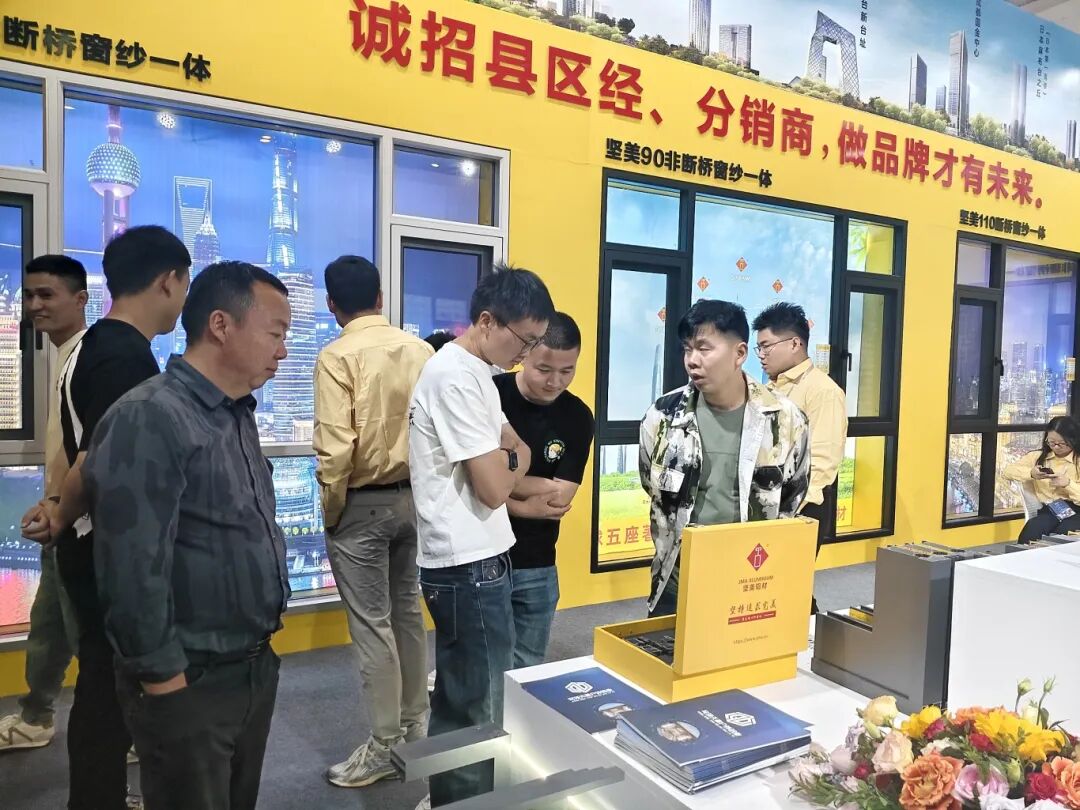 展会现场,坚美铝业集团不仅通过硬核产品与创新技术,持续擦亮“佛山制造”的底色,其广泛的品牌知名度与极具吸引力的加盟政策,也让众多客商产生了浓厚兴趣。开展首日,坚美展位便人流如织,商务洽谈氛围热烈。客商们或详细咨询门窗产品性能,或了解建材成品生产周期,或深入探讨加盟政策,现场热闹非凡。