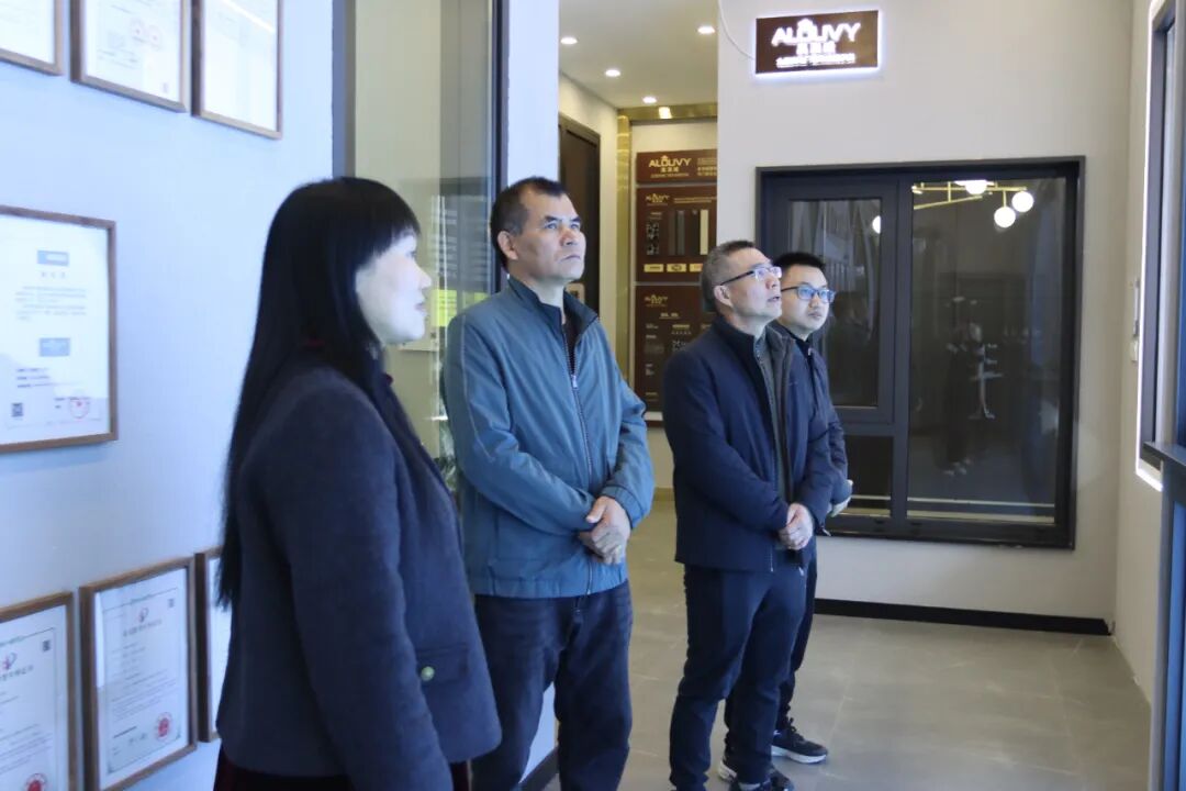 伊始,陆书记一行在李总带领下首先参观高登型材生产车间,旨在了解标杆企业强大的内生动力及新年复工复产情况。途中,李总详细介绍了高登自1985年发展40年来,在产品、技术、管理、文化方面全方位创新轨迹,阐述近几年公司经营成果及过去一年发展情况。2024年,面对复杂多变的国内外经济形势,高登凭借技术创新、产品质量、市场布局等方面的坚实基础,仍保持铝材供应商的高端领军地位,同时参编 35 项,其中国家标准项目 10 项,获广东省制造业500强、 家装铝材十强企业、家装门窗型材一线品牌、肇庆市制造业企业50强、肇庆市科技创新企业50强等荣誉。高登历来把国际标准、国家标准作为门槛,以市场和客户需要为最高标准。这种以客户为中心的品质理念,贯穿于高登从设计到生产的每一个环节,确保产品不仅符合最严苛的规范,更能精准对接市场的多元化需求。