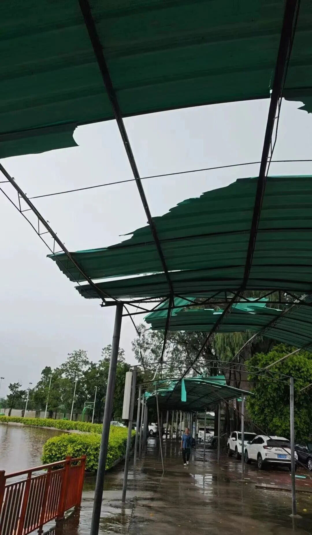 2025年7月初,热带台风侵袭造成乐平镇范湖小学风雨长廊(始建于2004年)严重损毁。该风雨长廊是从教学区通往生活区、运动区的主要通道,主要用于雨天时为师生活动遮风挡雨。因主支架断裂弯折、棚盖瓦片剥离,已完全丧失使用功能,对师生日常通行构成直接安全威胁,急需修复。学校计划利用暑假时间重建风雨长廊,经过询价,所需费用约10万元人民币。由于学校资金短缺,学校向佛山市三水区铝加工行业协会求助。