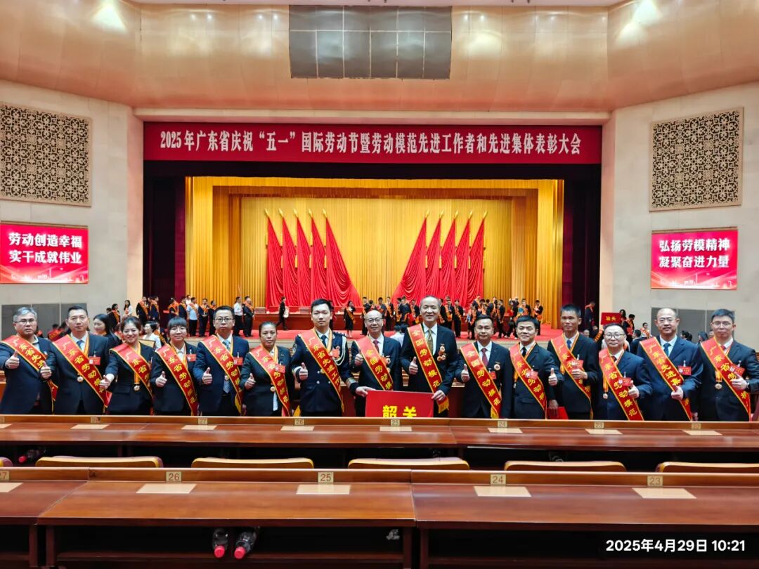 4月29日上午,2025年广东省庆祝“五一”国际劳动节暨劳动模范、先进工作者和先进集体表彰大会在广州举行,省委书记黄坤明作重要讲话。乳源东阳光优艾希杰精箔有限公司二期冷轧R22班组荣获“广东省先进集体”荣誉称号,精箔公司工会主席池国明光荣出席表彰大会。