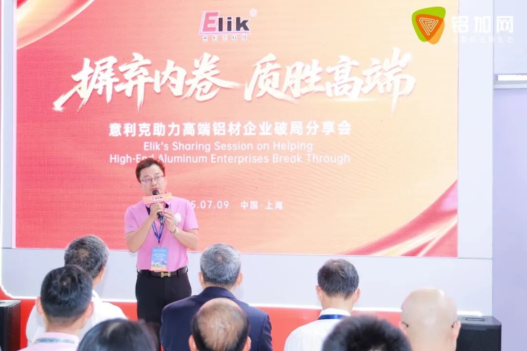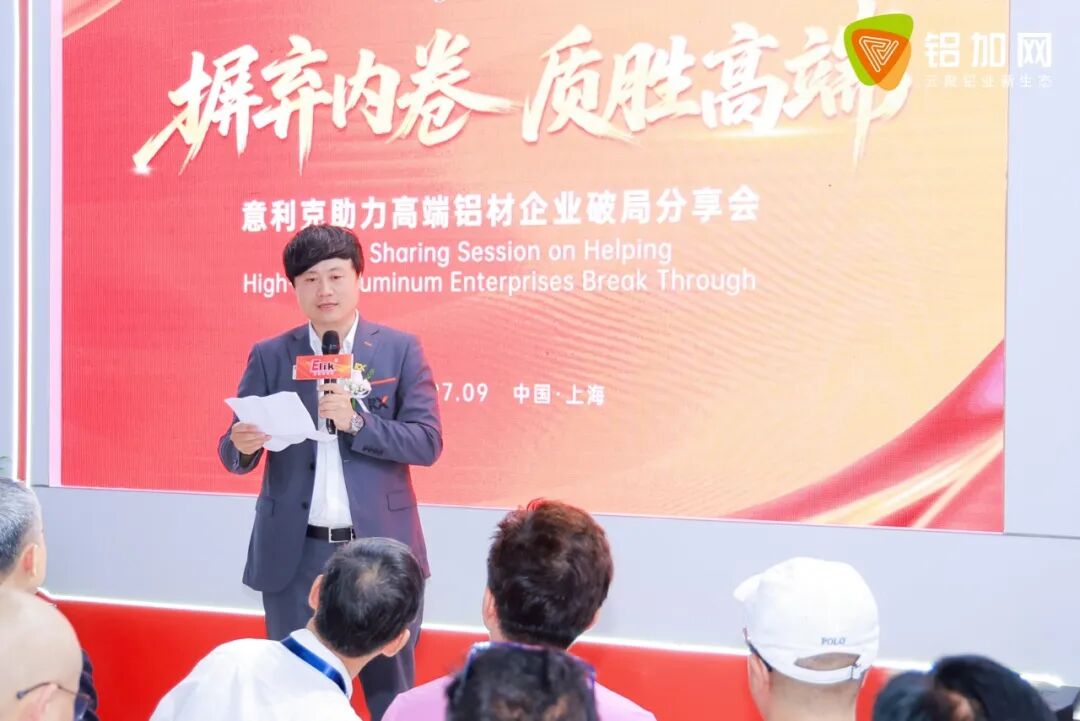 为更好地交流节能技术应用成果,展会期间,意利克举办了主题为“摒弃内卷、质胜高端——意利克助力高端铝材企业破局”的专题分享会。活动现场邀请了多位行业专家、合作企业代表齐聚一堂,围绕“高端化转型”“技术创新”“节能路径”等关键议题进行深度探讨。